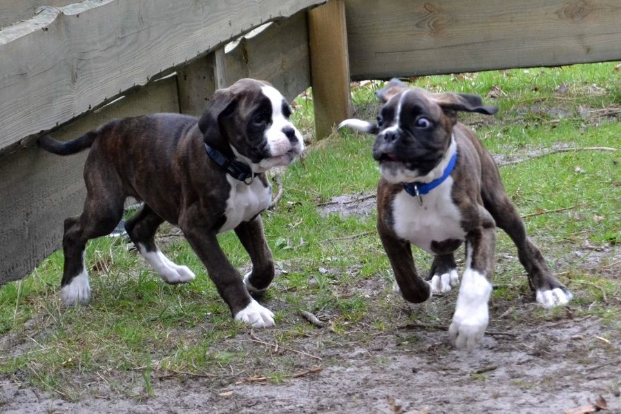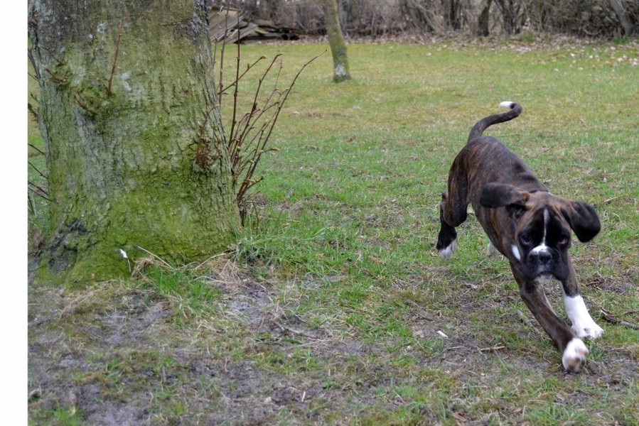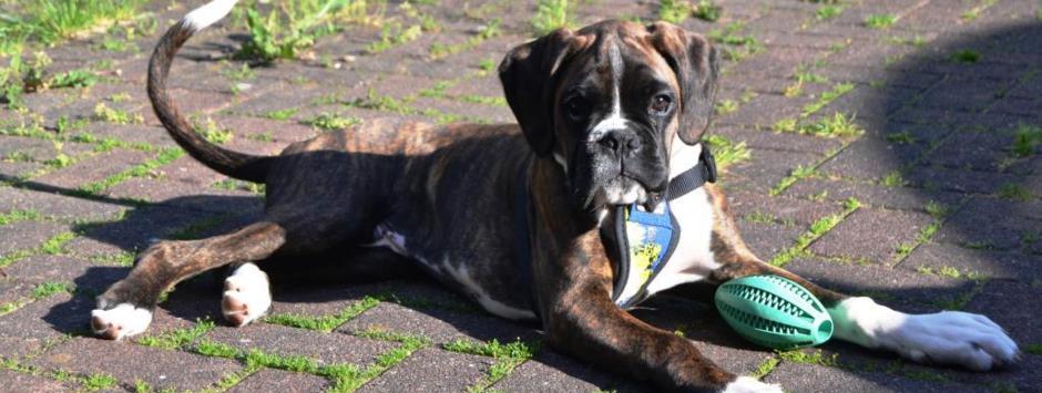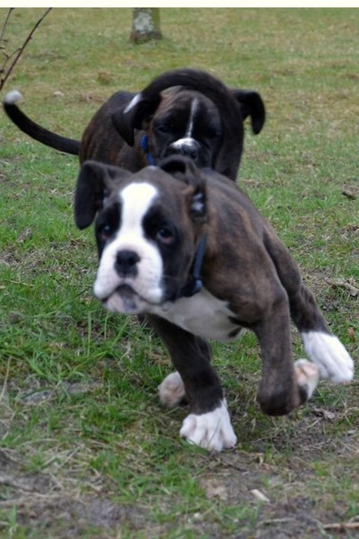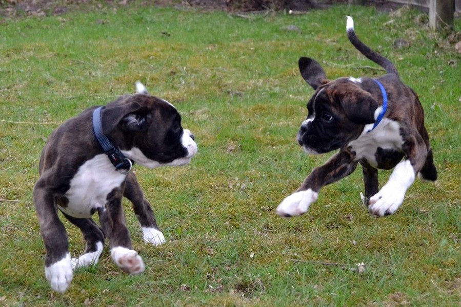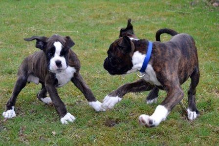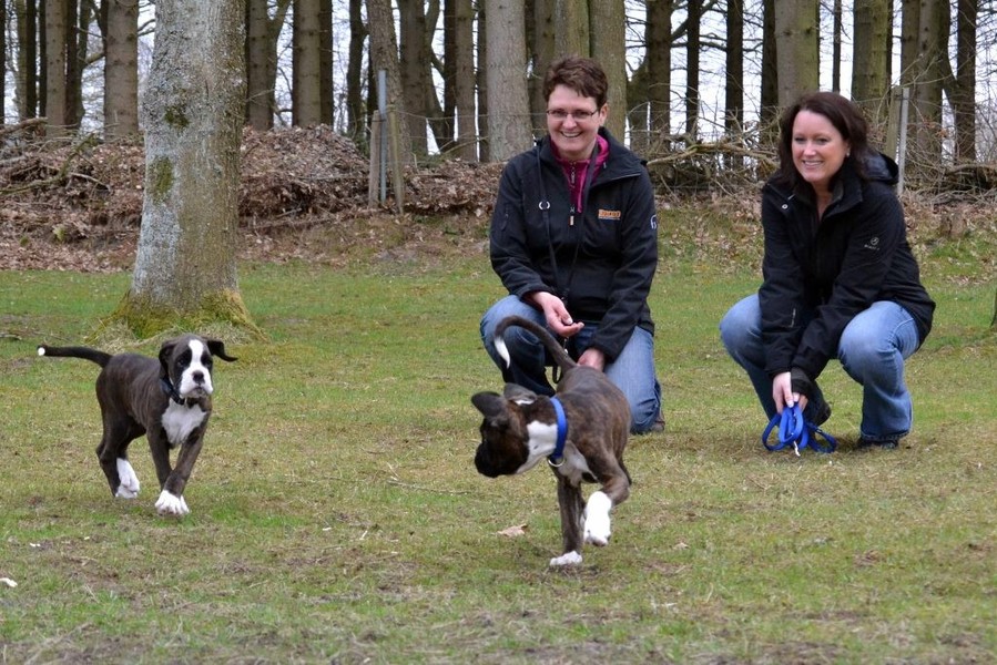 Nachdem unser Argon sich nun zuhause gut eingewöhnt hat sollte er auch seinen Übungsplatz kennenlernen. So fuhren wir mit ihm auf den Übungsplatz der Gruppe Glücksburg nach Munkbrarup, wo wir auch schon mit unserem Alibaba üben. Welpen sind etwas herrliches und kaum da gewesen schauten auch schon die ersten Boxerfreunde nach dem Kleinen. Zeitgleich mit Argon von PomPom fand Ramos vom Rehfeld den Weg in den hohen Norden. Es sollte eine sofort funtionierende Spielgemeinschaft werden, wie wir alle nach wenigen Augenblicken feststellen konnten. Endlich wieder spielen... Der Alte zuhause ist ja viel zu schnell müde....