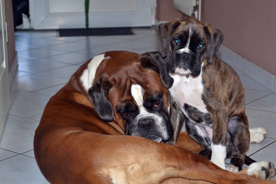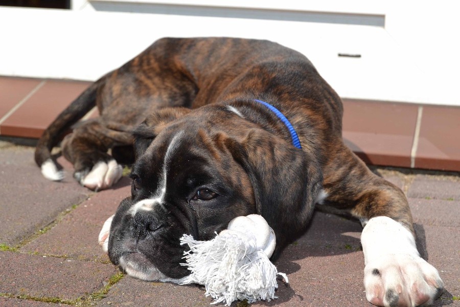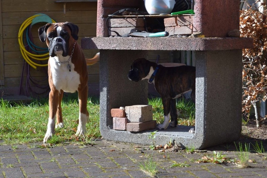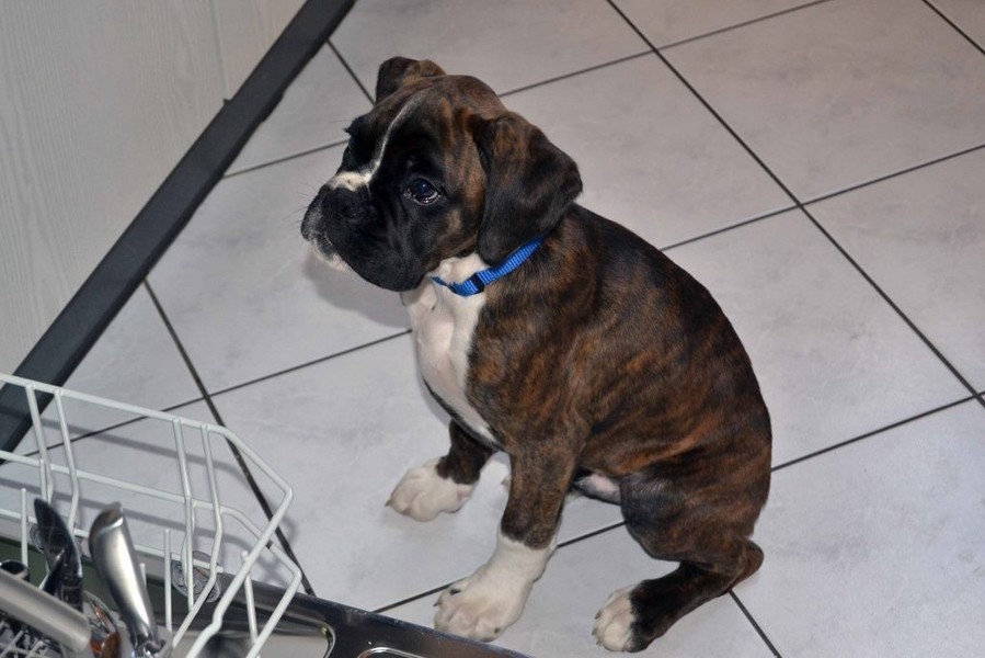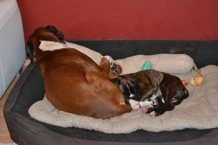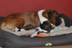 Argon bekommt immer mehr Vertrauen und vor allem Selbstvertrauen. Mittlerweile klaut er auch schon mal dem Großen das Spielzeug oder gibt sich nicht mehr nur mit einer kleinen Ecke im Bett zufrieden. Der Große ist aber so lieb, dass er alles mit sich machen läßt. Viel Spaß macht Argon auch beim spielen oder einfach nur beim schlafen. Er durchlebt im Schlaf gerne seinen Tagesverlauf und fängt plötzlich an im Schlaf zu Laufen oder zu bellen. Nun soll er bald zur 12 Wochen Untersuchung und wir hoffen, dass mit dem kleinen Kerl alles in Ordnung ist.